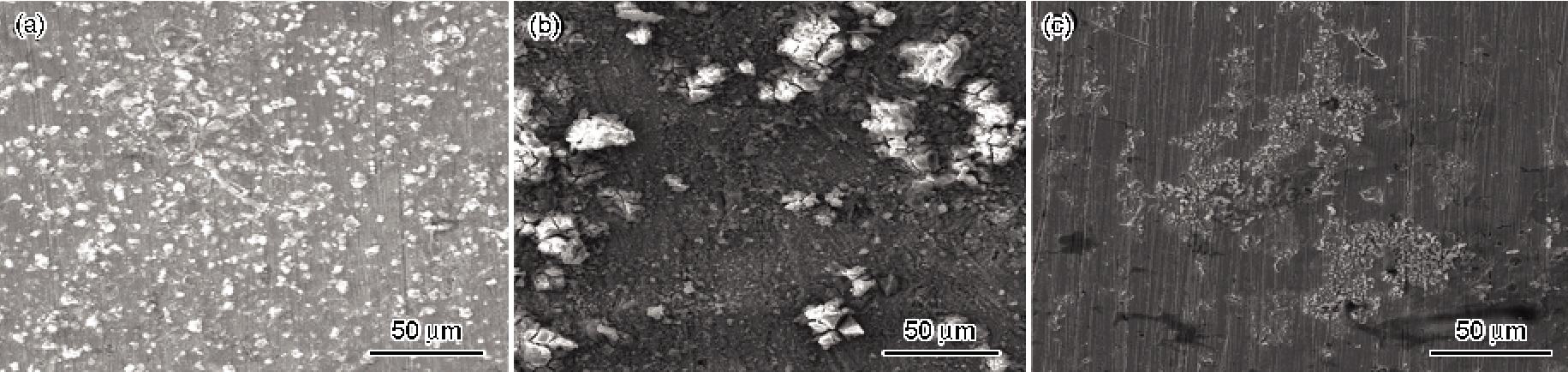 Fig.6 Micrographs of X60 pipeline steel under different flow velocity: (a) static state; (b) 0.742 m/s, (c) 1.484 m/s