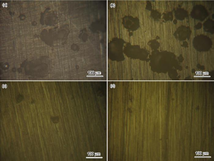 实验仪器为德国ZAHNER Zennium电化学工作站,实验采用传统的三电极体系,即工作电极、辅助电极 (为铂铌丝)、参比电极 (由饱和甘汞电极SCE和毛细管的盐桥组成)。极化曲线测量的扫描速率为2 mV/s,扫描范围为-0.500~1.000 V;电化学阻抗测量的频率范围为2×l0-~2×l0 Hz。用XJP-6A金相显微镜 (EM) 观察形貌。