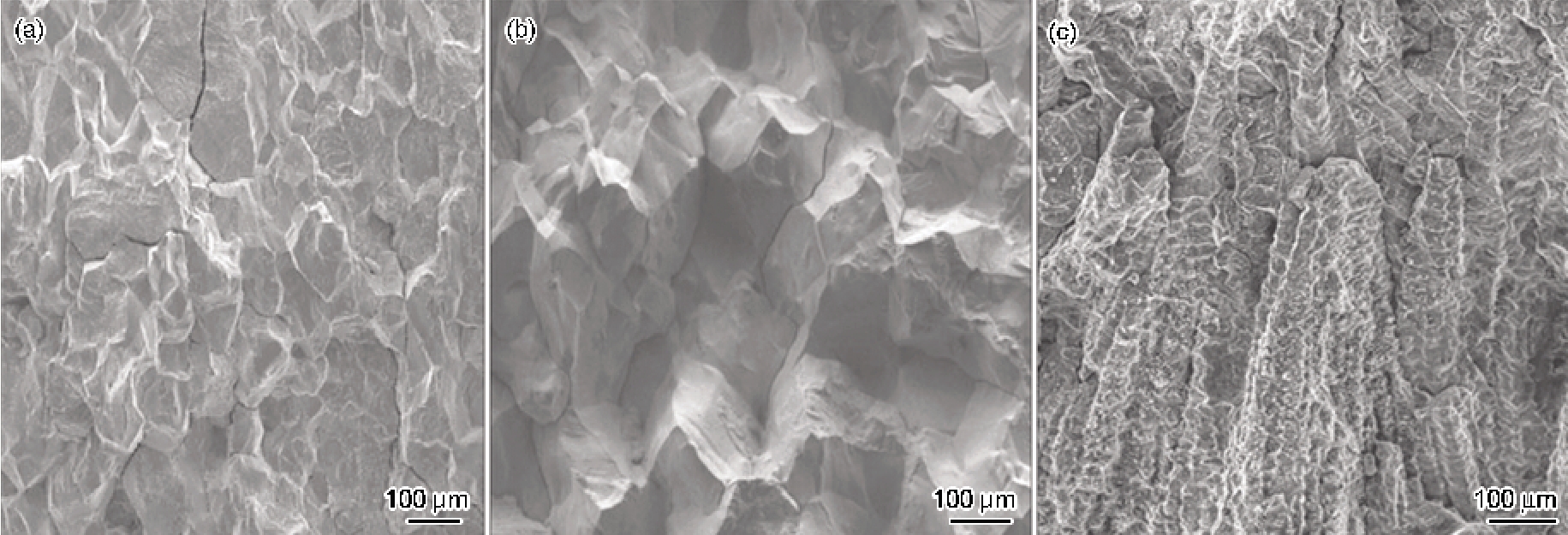 Fig.4 Intergranular SCC fracture morphologies of annealed (or as-deposited): (a) Type 304L stainless steel+20% cold work at -55 ℃, (b) annealed Alloy 600+20% cold work, (c) Alloy 182 weld metal [8]
