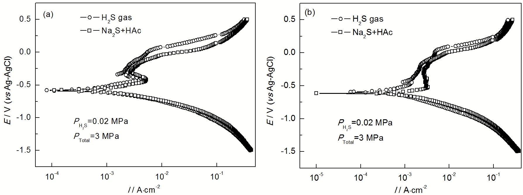 从以上分析不难看出,模拟含H2S油气田腐蚀体系的方法不同,则碳钢的腐蚀速率、腐蚀机理及Tafel斜率等均存在一定的差异,从这点来说,两种不同H2S引入方法不可以相互代替。