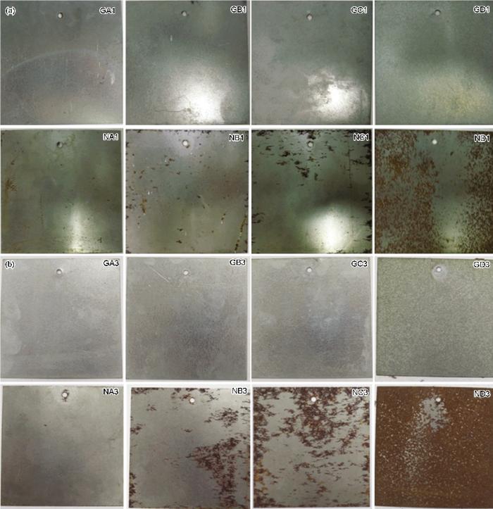Fig.3 Surface morphologies of the samples after corrosion for 1 a (a) and 3 a (b)