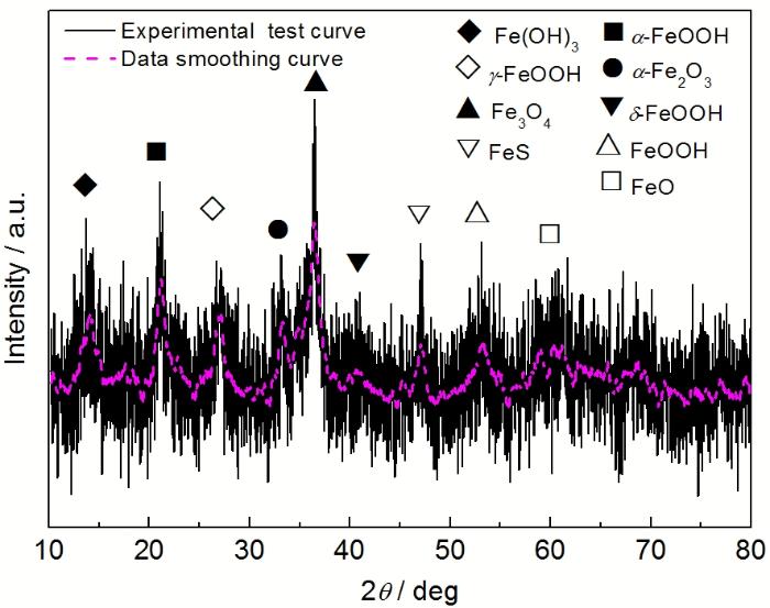 Fig.9 XRD pattern of the corrosion products of carbon steel sample exposed for 3 a at monitoring point D