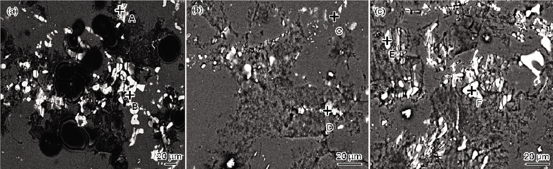 Fig.7 EDS results of typical second-phase particles in the peak aged alloys with 0% (a), 0.2% (b) and 0.4% (c) Yb after exfoliation corrosion for 30 min