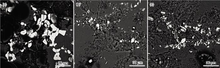采用SEM对不同Yb含量合金内峰时效后的第二相粒子分布情况进行观察,结果如图4所示。可以看到,在3个合金试样中,相同点是均分布着第二相粒子,这主要是由于合金中Cu含量较高,超过其在Al中的最大固溶度,故多余的Cu以第二相粒子的形式存在于Al基体中。不同点是各合金内分布的第二相数量及形貌有差别,这与Yb的加入和其含量有关。由图可知,Yb含量为0.2%的合金与不含Yb合金相比,轧面粗大第二相粒子减少,第二相呈细小弥散分布。随着Yb含量增加,合金内粗大的第二相数量增加,分布更加不均匀。