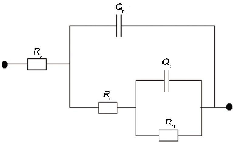 Fig.2 Equivalent circuit model used to fit the experimental impedance data of X80 pipeline steel during immersion in coastal tidal flats simulated soil solution