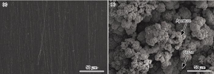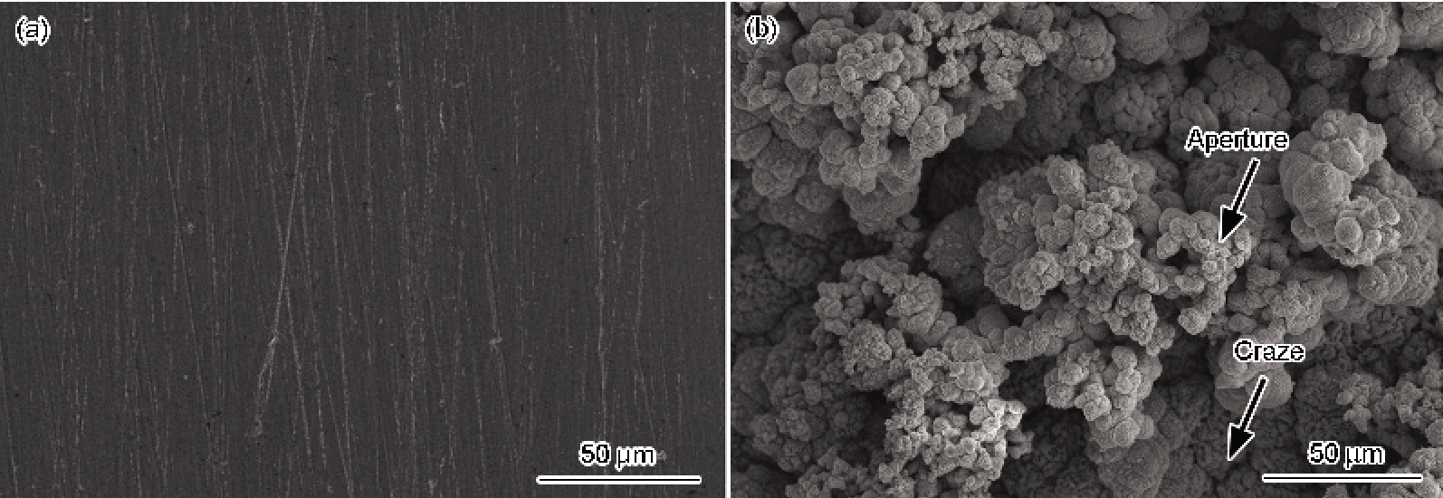 Fig.6 SEM photographs of X80 pipeline steel after immersion in coastal tidal flats simulated soil solution for 0 d (a) and 28 d (b)