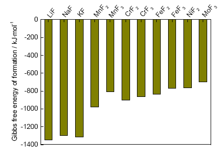 图5 利用HSC5.1软件计算在700 ℃下单位摩尔F2的常见氟化物Gibbs自由能