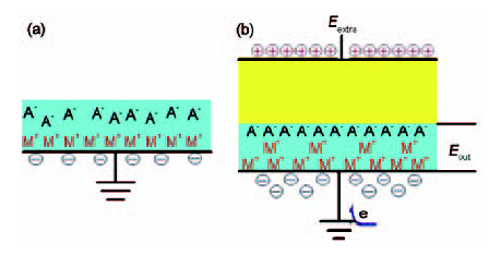 Fig.8 Models of electric double layers without (a) andwith (b) applications of alternating electric field