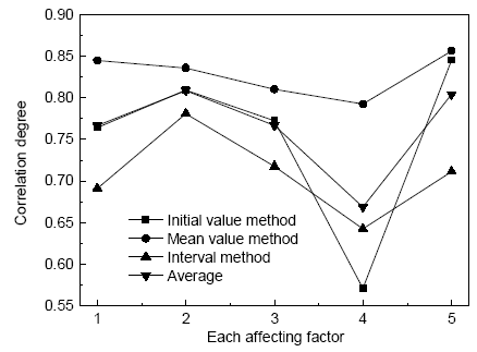 (5) 关联度排序,用关联度的大小描述因素间的关联程度[8]。