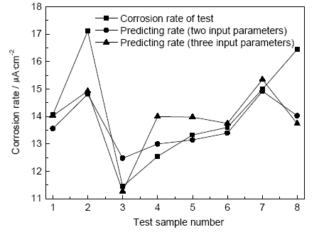 | Serial number | Real corrosion rateμAcm-2 | Two input parameters | Three input parameters | BP artificial neural network | |||