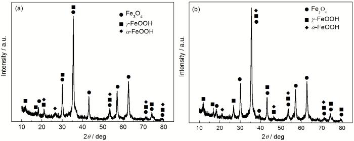 Fig.8 XRD spectra of CR (a) and LC (b) steels after salt-spray corrosion test
