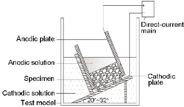 钢筋横截面作为工作面,面积为0.385 cm2,其余表面用环氧树脂密封。工作面经金相砂纸逐级打磨至1000#,先后用蒸馏水和无水乙醇清洗,烘干后埋入试样的中心,在钢筋另一端引出Cu导线。