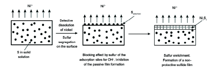 目前,硫致钝化膜腐蚀退化的研究工作已经取得了很大进展。主要在热力学计算与电化学实验方面进行了大量的研究。但仍然有一些方面需要澄清: