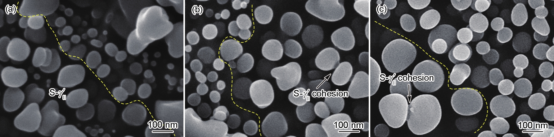 | Fig.6 Morphology characteristics of S-γ'Ⅱ in FGH4720Li alloy after ageing at 730oC for 200 h (a), 500 h (b), and 3000 h (c) |