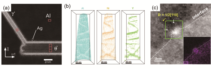 20 ], and high-angle annular dark-field scanning transmission electron microscopy (HAADF-STEM) images showing heterogeneous precipitation (c)