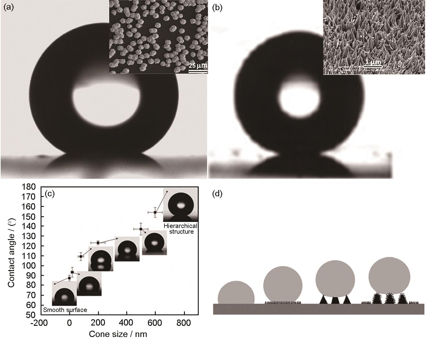 Fig.8 The superhydrophobic surface and SEM image (inset) of Au nanoflower prepared by electrodeposited (a)[ |