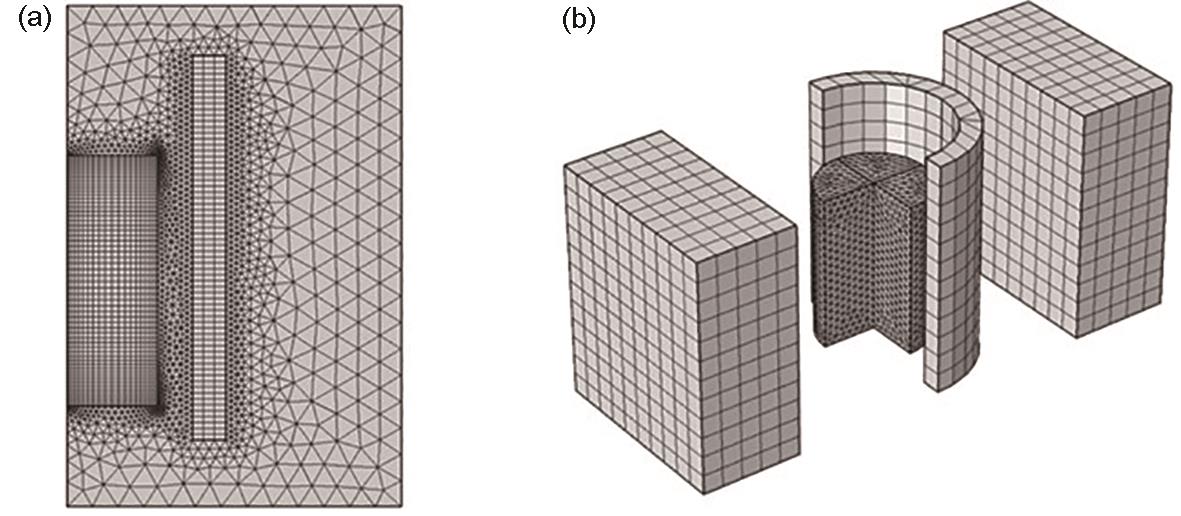 | Fig.4 Numerical simulation geometries of PMO (a) and CMF (b) (CMF—combined magnetic field) |