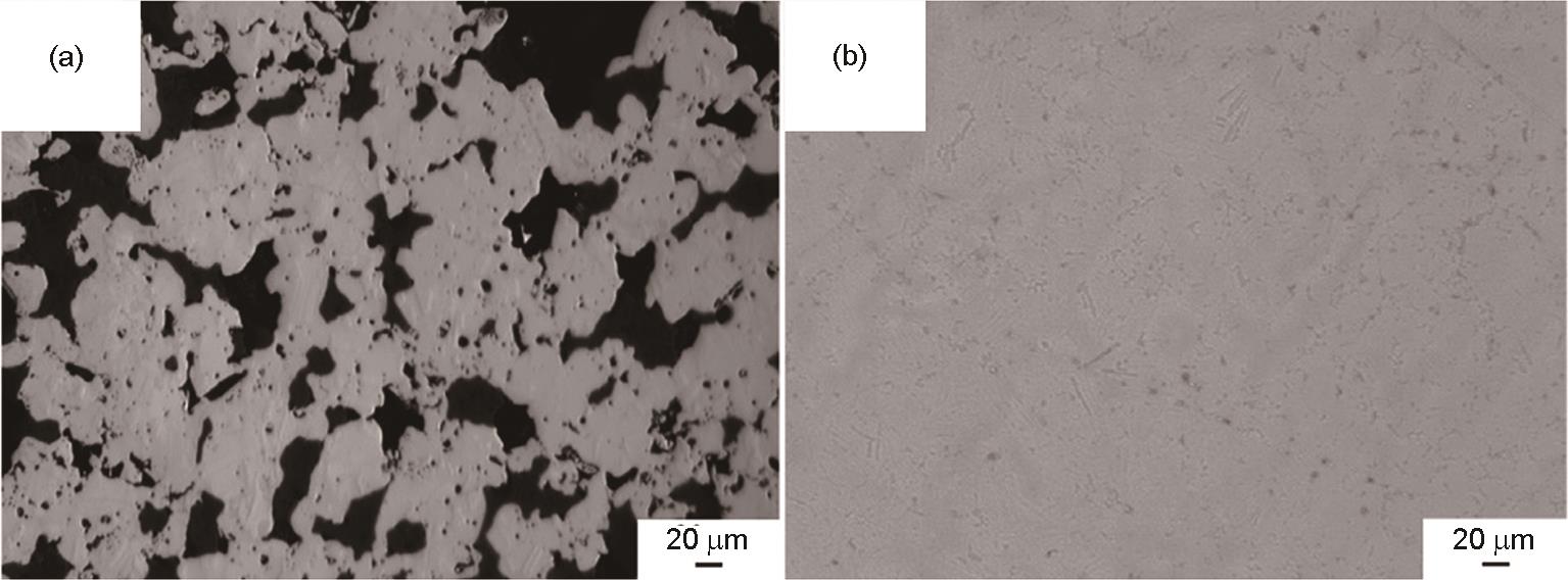 | Fig.6 SEM images showing microstructures of Ti-48Al alloys before (a) and after (b) hot isostatic pressing (HIP)[ |