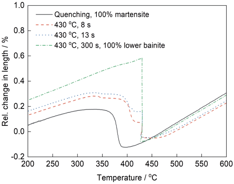 | 图1 淬火和等温淬火过程中试样的相对长度变化曲线 |
