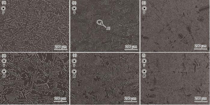 (1) 在0和6 T强磁场以及5、50、200 μm/s凝固速率条件下进行了Al-12.7%Si合金的定向凝固和淬火实验。结果表明,随着凝固速率的增加,Al-12.7%Si合金发生了从粗大Al/Si共晶向细小Al/Si共晶,再向离异共晶组织枝晶同Al/Si共晶共存的亚共晶组织转变。