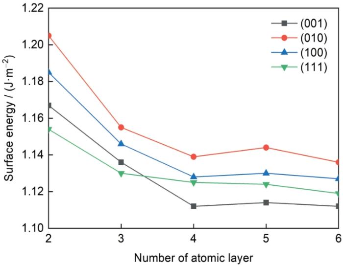 不同层数(AlCrTaTiZr)N的(100)、(010)、(001)和(111)面的表面能