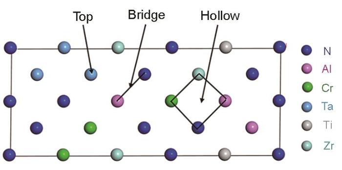 Schematic of adsorption sites of H2 on the surface of (AlCrTaTiZr)N