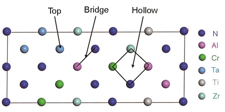 | Fig.4 Schematic of adsorption sites of H2 on the surface of (AlCrTaTiZr)N |