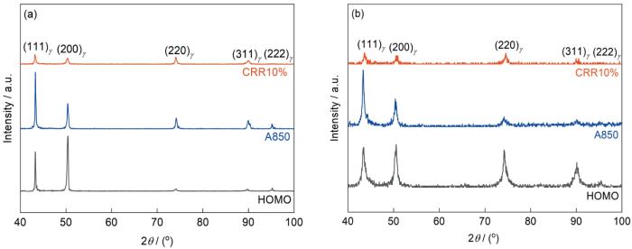 HOMO、A850和CRR10%材料拉伸变形前后的XRD谱