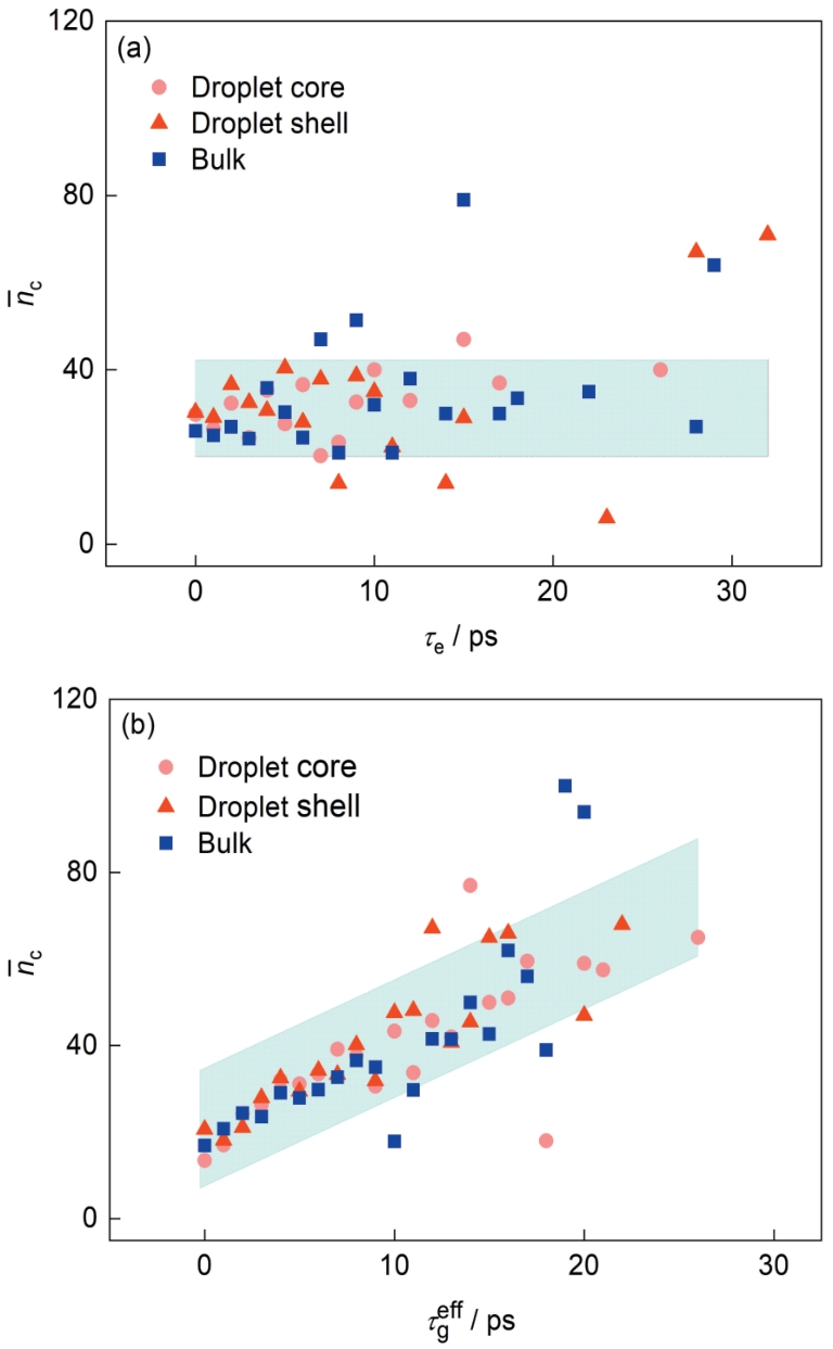 | 图8 Al液滴芯部和表层及Al液体晶胚孕育时间(τe)和晶胚有效生长时间( |