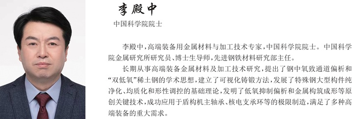 李殿中,高端装备用金属材料与加工技术专家,中国科学院院士。中国科学院金属研究所研究员、博士生导师,先进钢铁材料研究部主任。