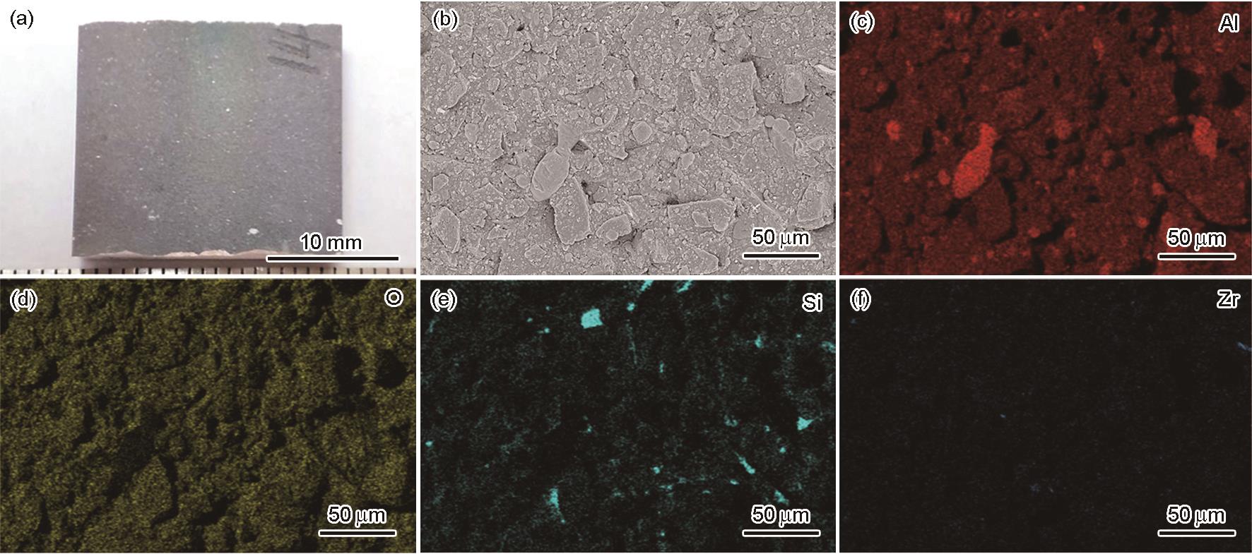 Fig.2 Surface morphologies (a, b) and EDS elemental analyses of Al2O3-coated Si-based ceramic core (a) overall morphology (b) microstructure of the Al2O3-coated Si-based ceramic core (c-f) EDS mappings corresponding to Fig.2b |