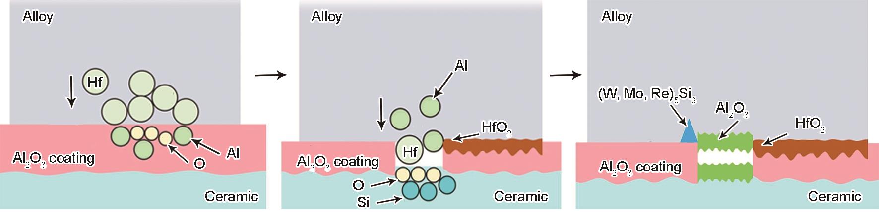 | 图17 合金-施加Al2O3涂层的硅基陶瓷型芯体系的界面反应示意图 |