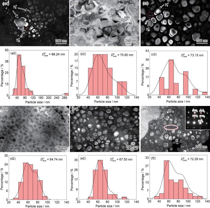 SEM images (a1-f1) and particle size distributions (a2-f2) of γ