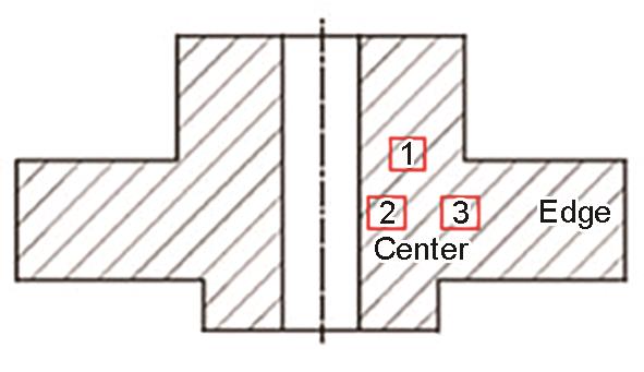| Fig.1 Schematic of billet disc and sampling positions of FGH4720Li (FGH) and GH4720Li (GH) alloys (1—FGH-1/GH-1, 2—FGH-2/GH-2, 3—FGH-3/GH-3) |