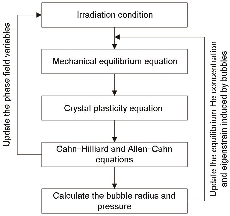 | Fig.4 Flow chart of phase field and crystal plasticity simulation of He bubbles |