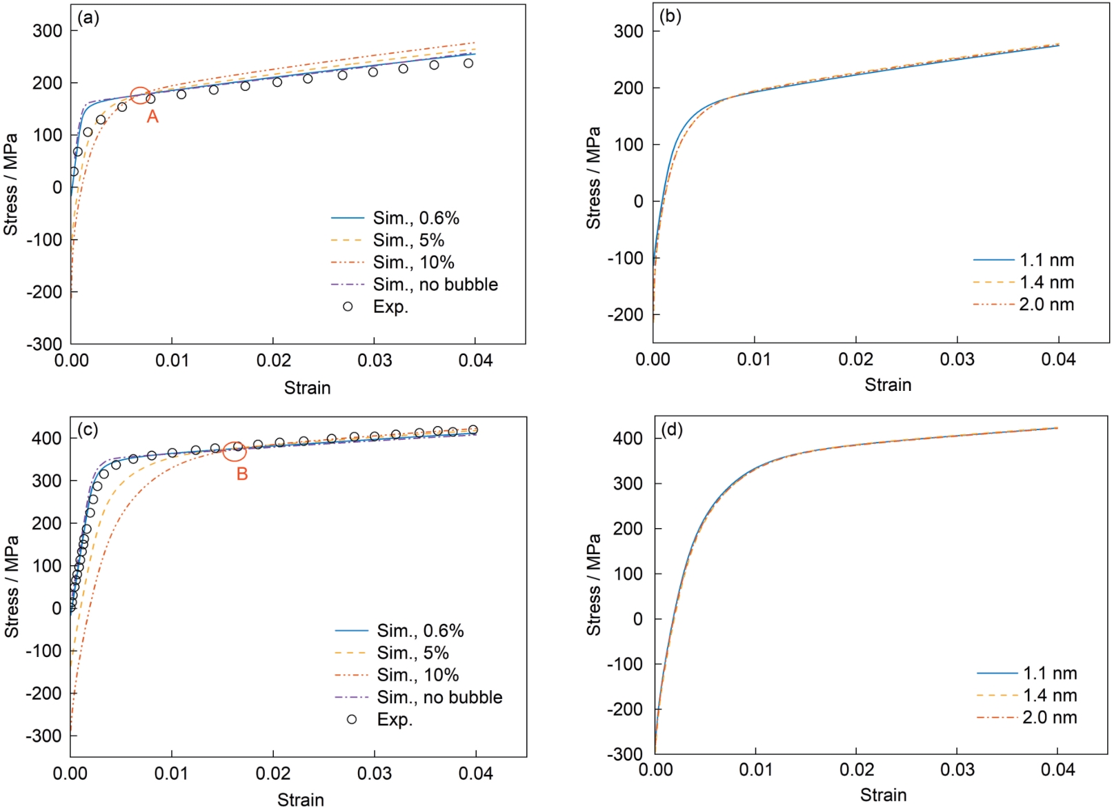 | 图13 He泡占比和尺寸对应力-应变曲线的影响 |