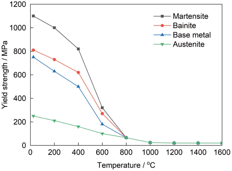 | Fig.5 Yield strengths of each phase in 34CrNi1Mo steel obtained by JMatPro software |