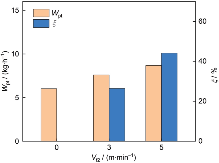 | 图6 Vf2对摇动电弧焊接熔敷速率(Wpt)及其增长率(ζ)的影响 |