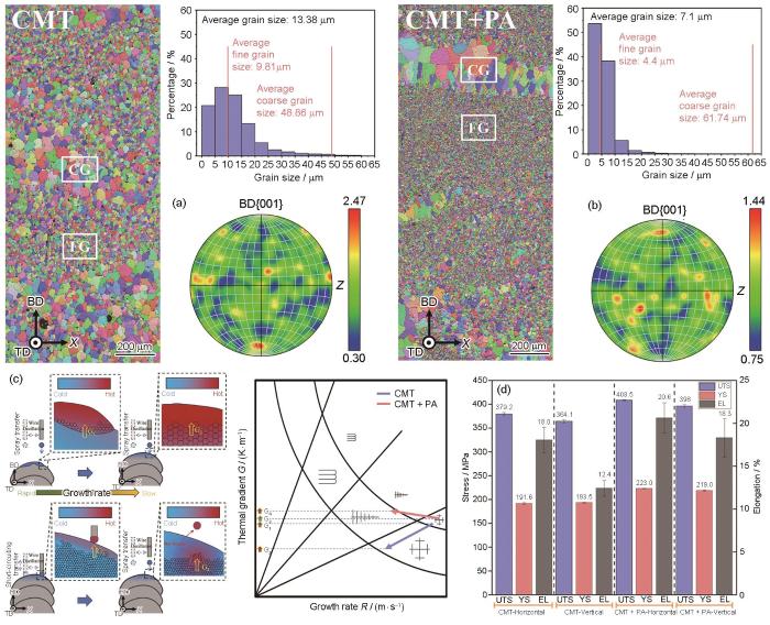 Microstructure and mechanical properties of WAAM Al-Mg-Sc-Ti alloys with different printing modes[49] (EL—elongation, FG—fine grain, CG—coarse grain)