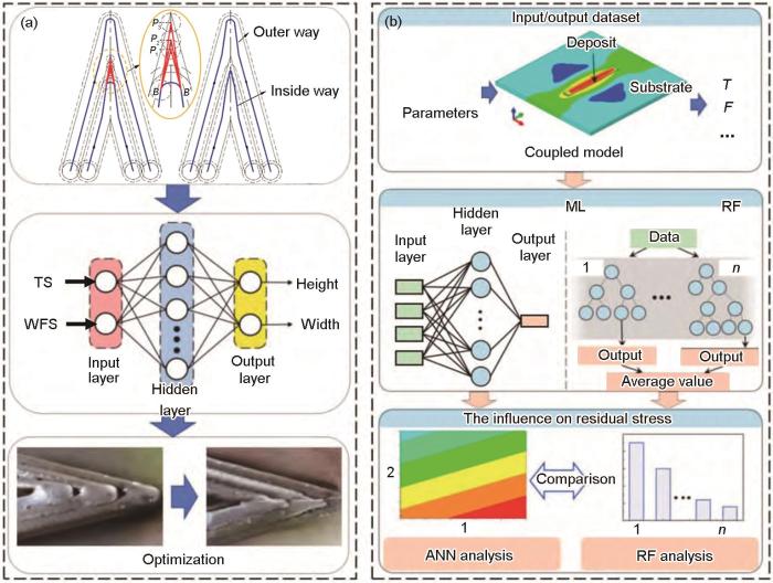 ... [13,49,51,53,54,58,59,61,63,64]Relationship between UTS and EL of WAAM Al-Mg-Sc alloys[13,49,51,53,54,58,59,61,63,64] (FSP—friction stir processing)Fig.135 机器学习在WAAM中的应用