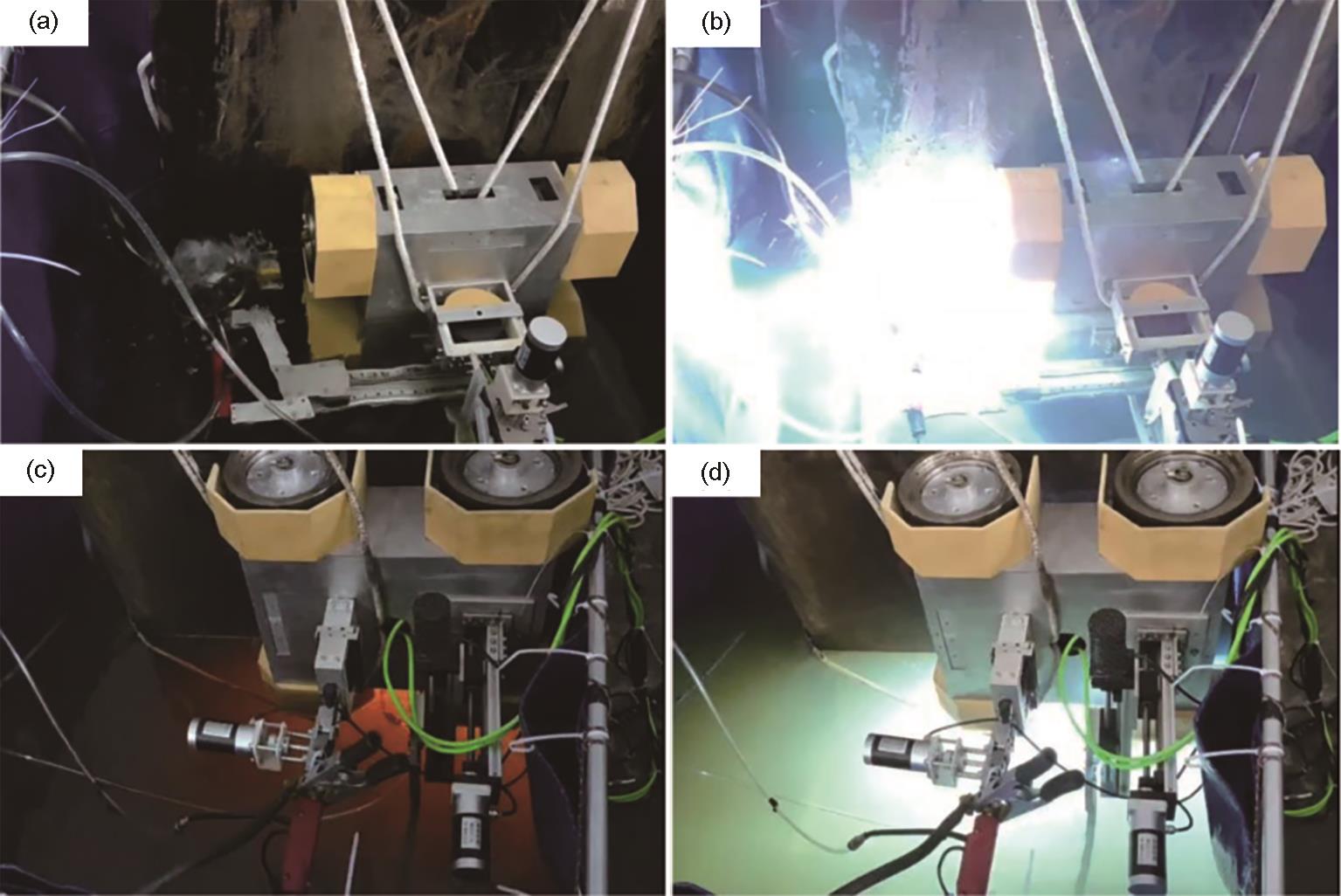 | Fig.8 Elevation welding test process of magnetic adsorption wheeled underwater welding robot[ |